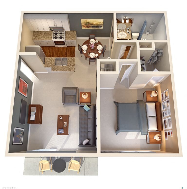 1 Dormitorio, 1.5 Baños, 720 pies²Disponible AhoraGalería del Modelo