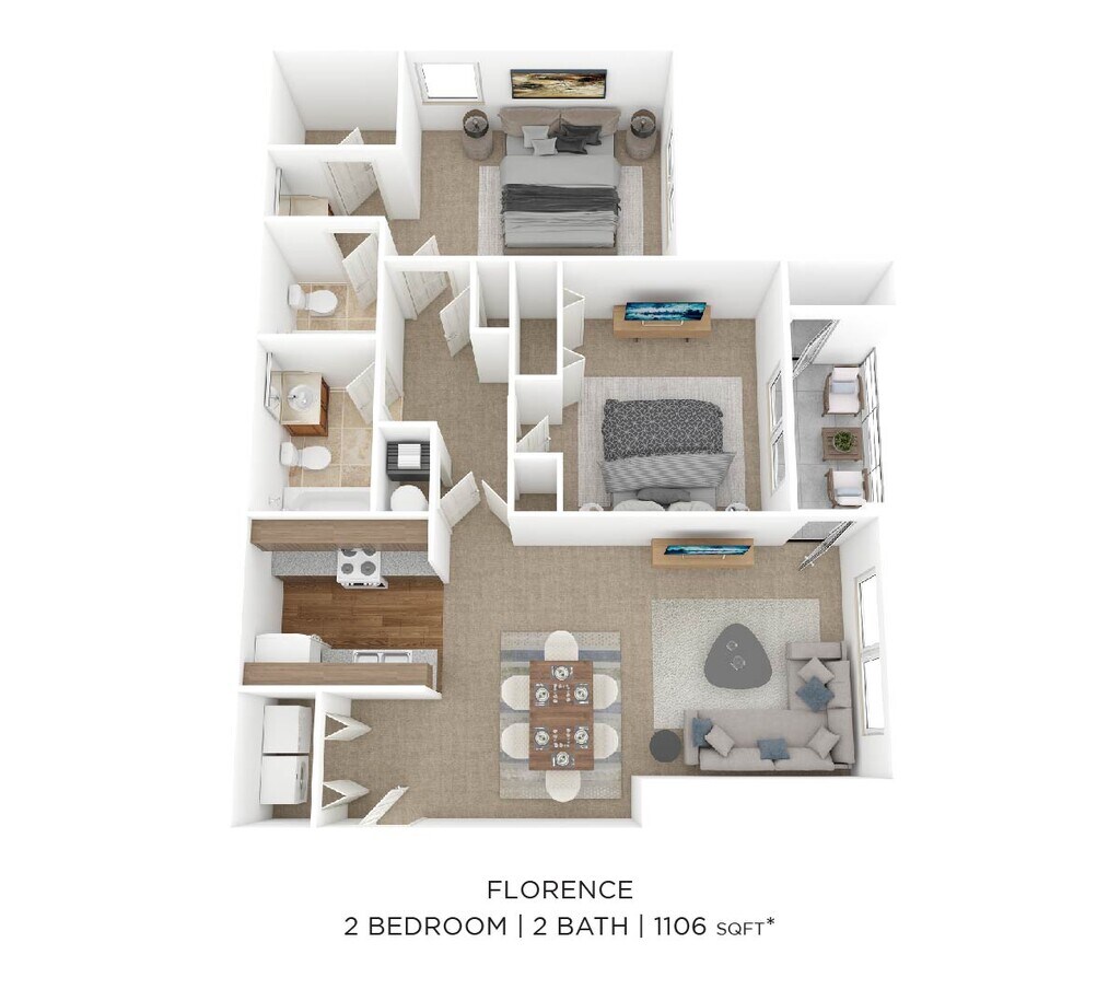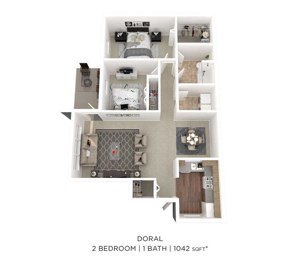 1 Dormitorio, 1 Baño, 895 pies²Disponible January 15, 2026El más grandeEsta opción tiene las unidades más grandes para este modeloGalería del Modelo