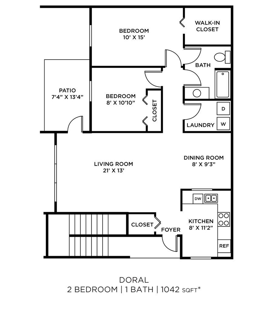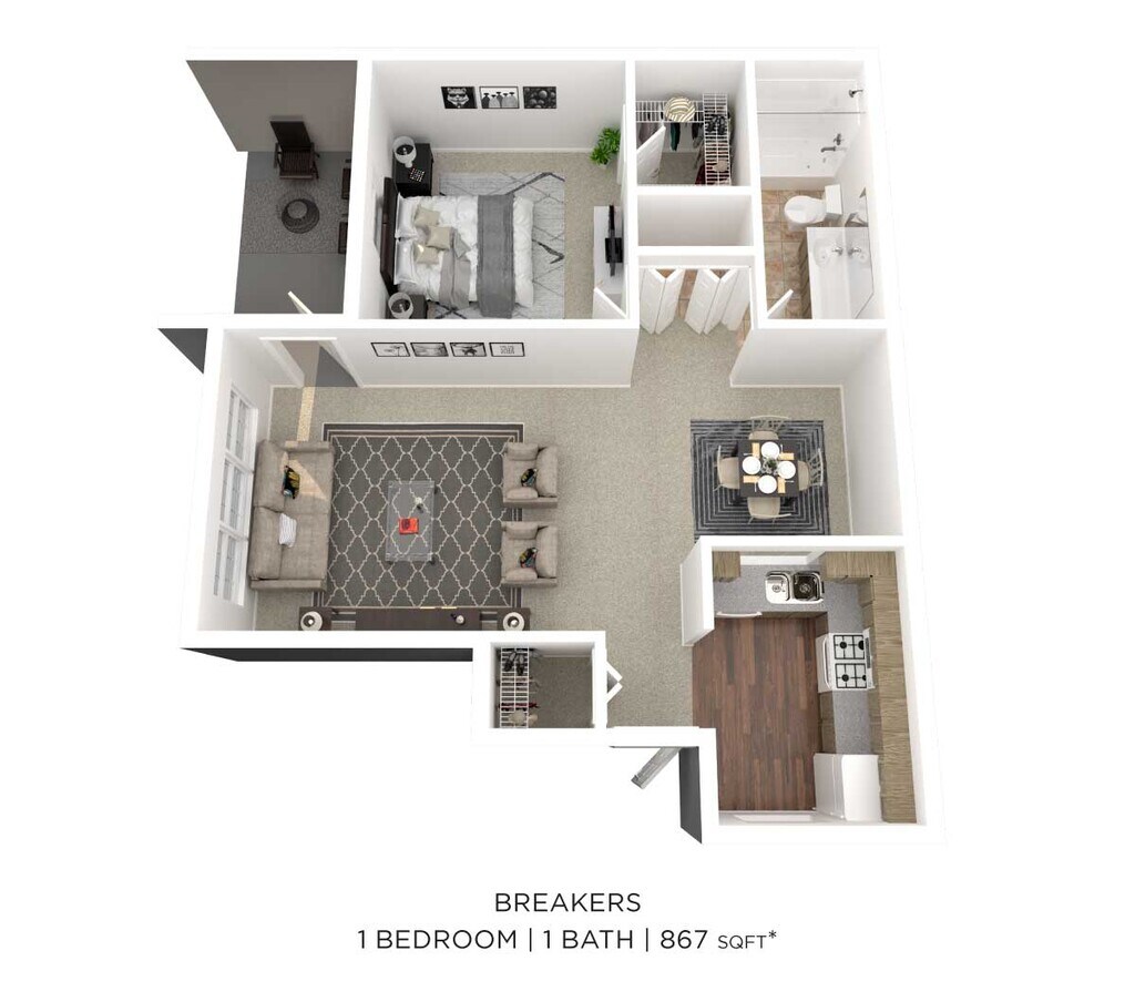 1 Dormitorio, 1 Baño, 867 pies²Disponible AhoraGalería del Modelo