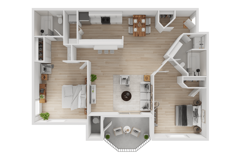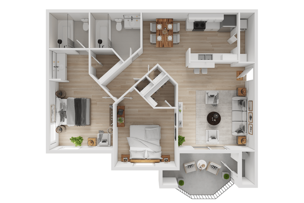 2 Dormitorios, 2 Baños, 960 pies²Precio Mensual TotalDisponible AhoraGalería del Modelo