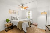 Las características de los apartamentos agradable, well-finished pisos de madera noble. Un plano de planta abierto, sala de estar/comedor, con una cocina bien equipada, desayunador, encimeras de granito, horno de microondas, amplio refrigerador con dispensador de hielo, lavabo profundo con triturador de basura y lavaplatos. Moderno baño. Las dos amplias habitaciones y un habitación más pequeñas. Excelente espacio de guardarropas en cada habitación. Sala de almacenaje adicional en el área de garaje. Garaje para 2 automóviles incluido con el alquiler. Lavandería gratuito, además de la calefacción y el agua caliente también están incluidos en el alquiler. Hay acceso seguro con intercomunicador, una pequeña área del vestíbulo y un patio de uso común en la espalda.