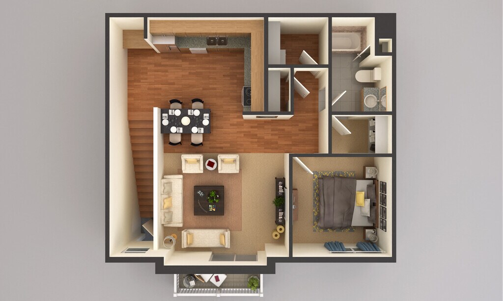 1 Dormitorio, 1 Baño, 850 pies²Galería del Modelo