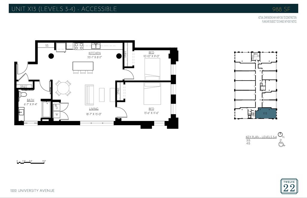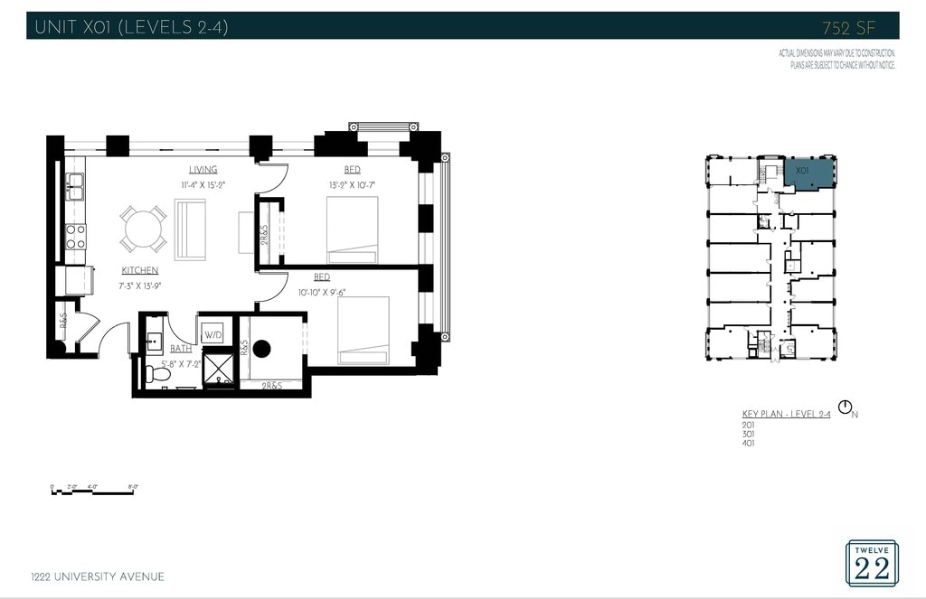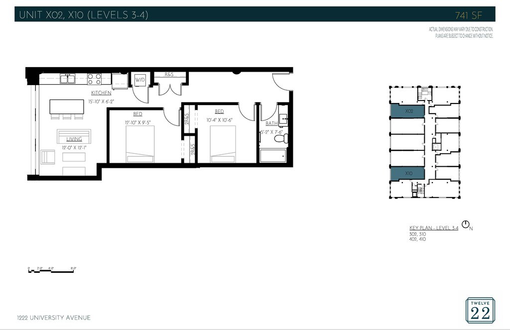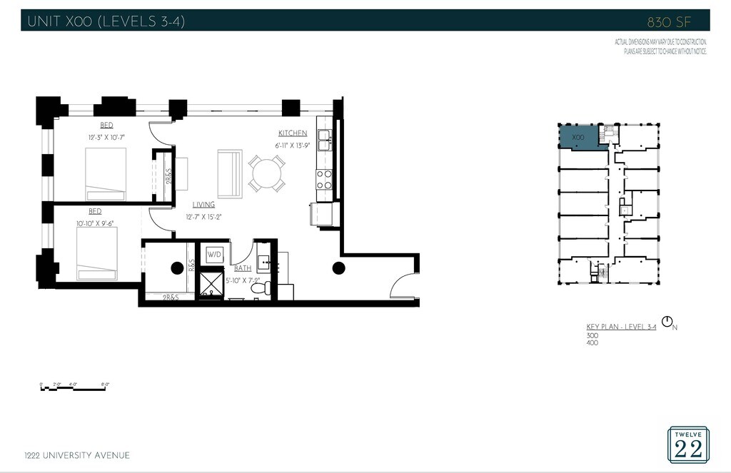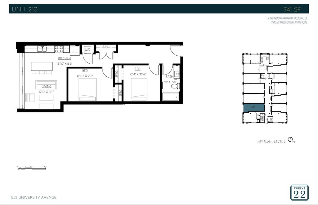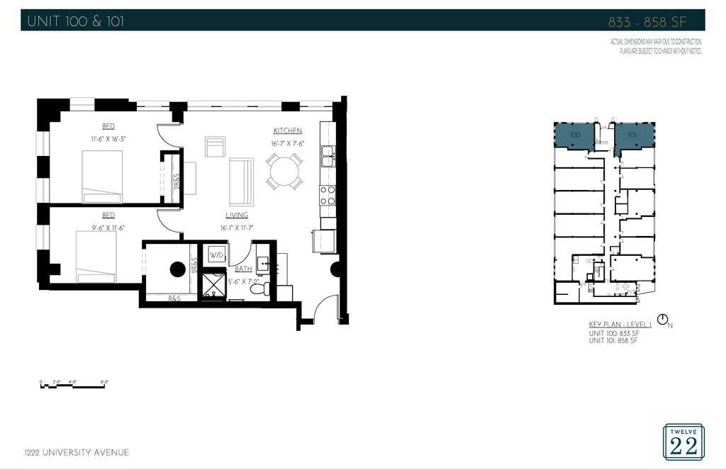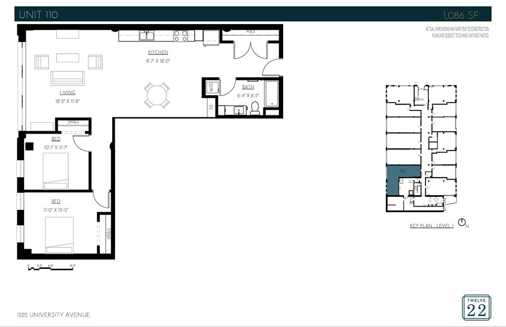 Twelve22 ofrece apartamentos de 1 a 2 Dormitorios desde $1,345 con 551–1,030 pies cuadrados. Aquí está el precio actual y la disponibilidad: