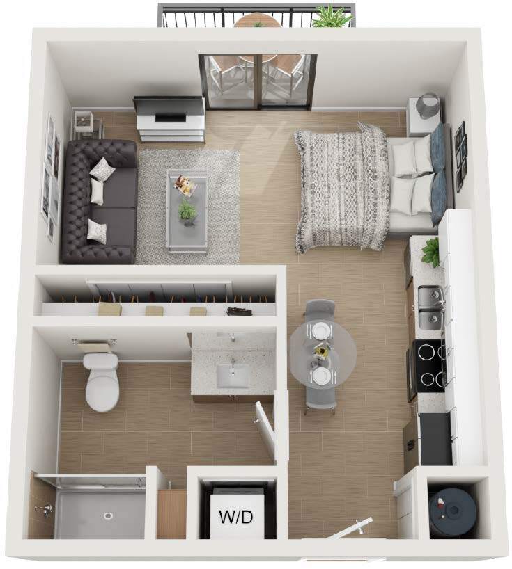 Estudio, 1 Baño, 456 pies²El más grandeEsta opción tiene las unidades más grandes para este modeloGalería del Modelo