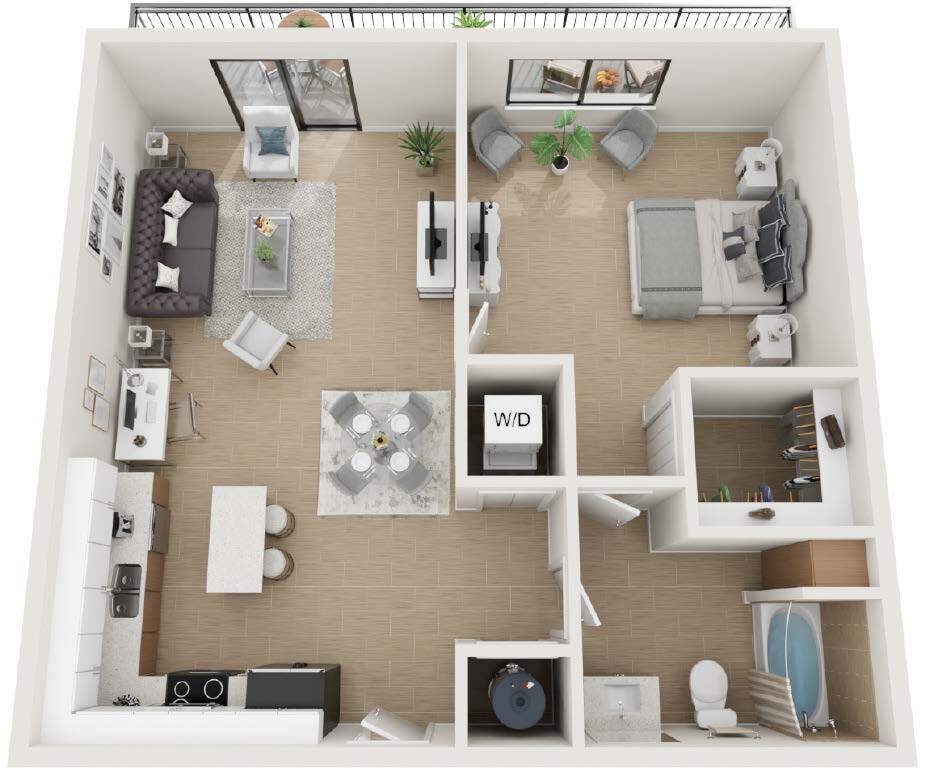 1 Dormitorio, 1 Baño, 815 pies²Disponible AhoraEl más grandeEsta opción tiene las unidades más grandes para este modeloGalería del Modelo