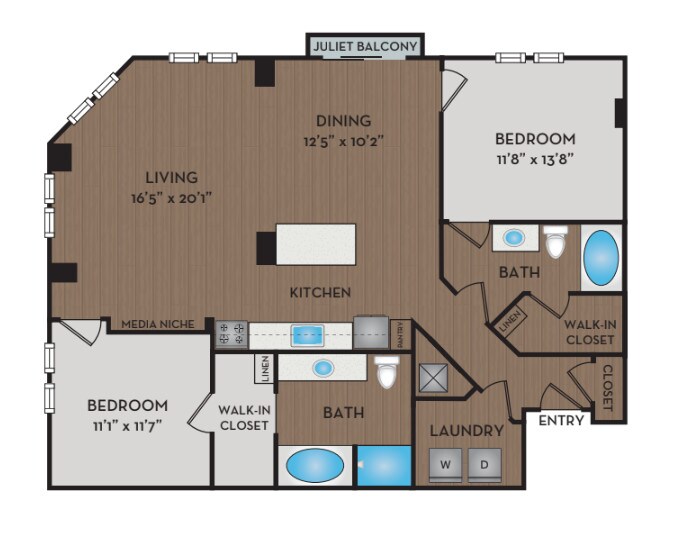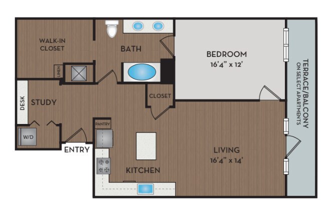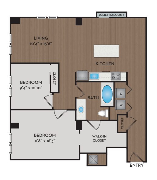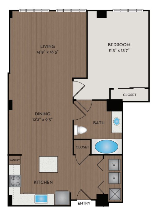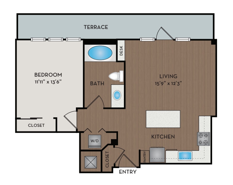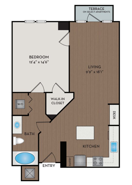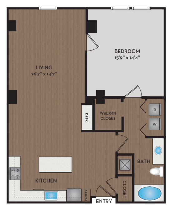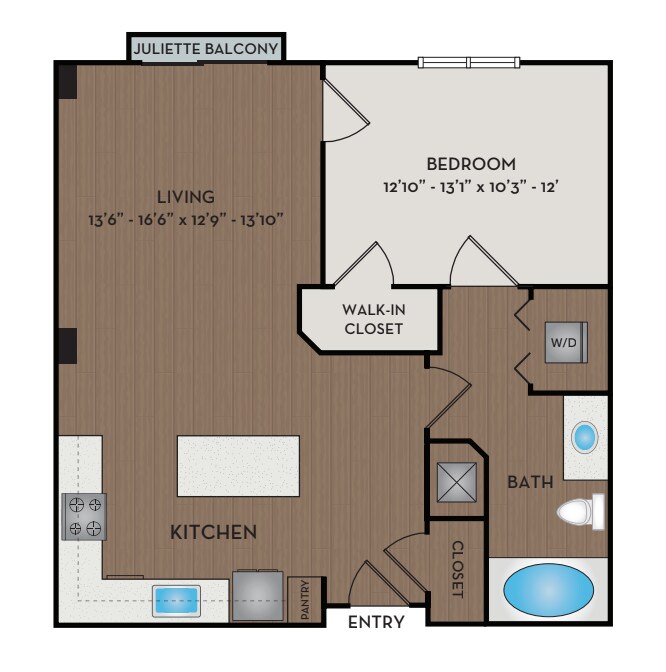 1 Dormitorio, 1 Baño, 714 pies²Disponible AhoraGalería del Modelo