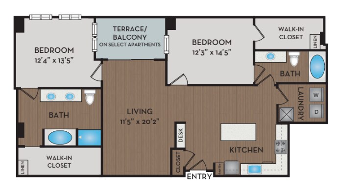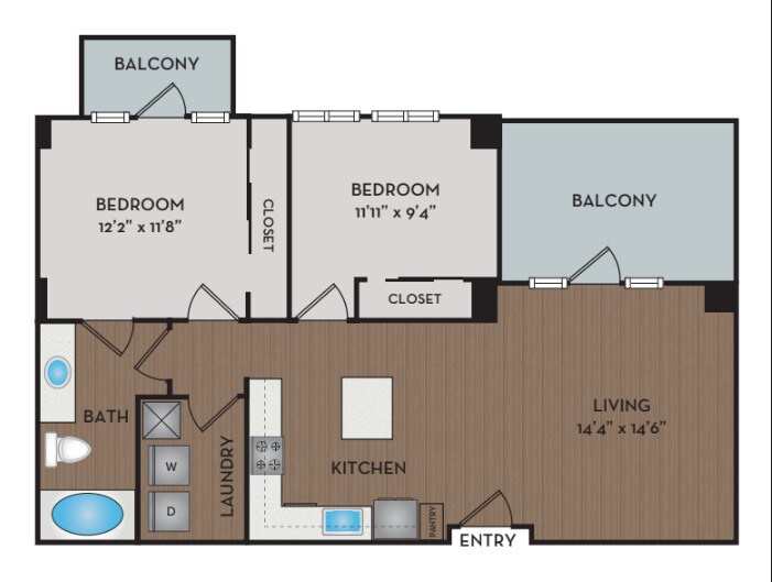 Modelo de apartamento: A2Desde $1,3911 Dormitorio, 1 Baño, 700 sq ftDisponible December 4, 2025![]()