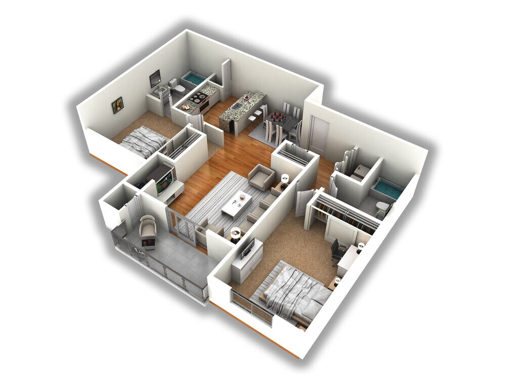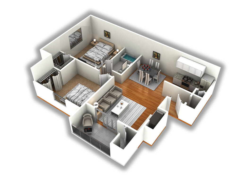 2 Dormitorios, 1 Baño, 840 pies²Disponible AhoraGalería del Modelo