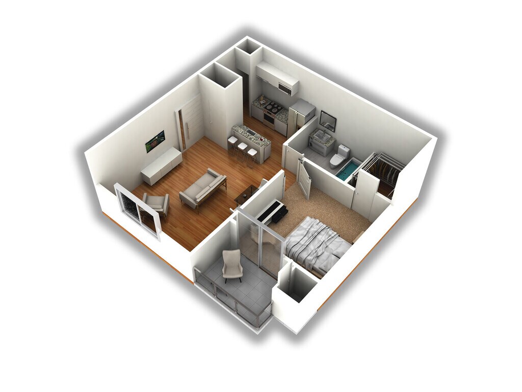 1 Dormitorio, 1 Baño, 546 pies²Disponible AhoraGalería del Modelo