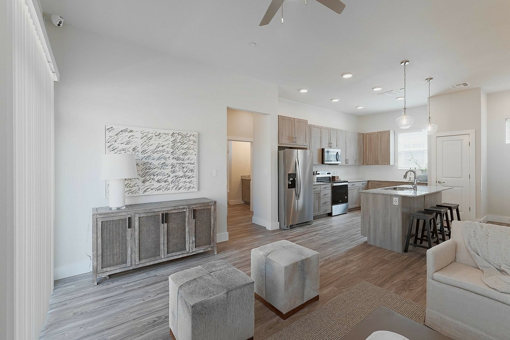 Modelo de apartamento: One BedroomDesde $1,5641 Dormitorio, 1 Baño, 677 sq ftDisponible March 27, 2026PlanosFotos![]()