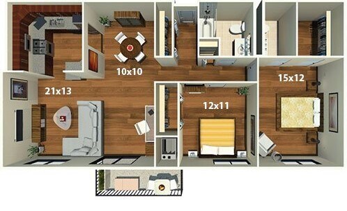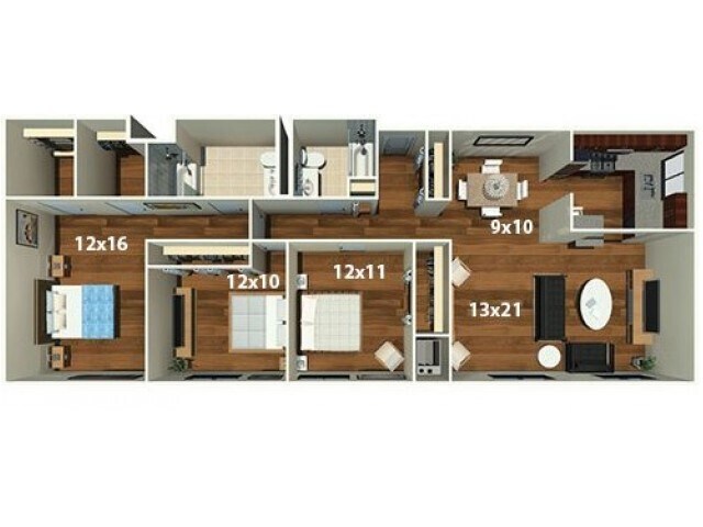 Modelo de apartamento: 3 BedDesde $2,1093 Dormitorios, 2 Baños, 1250 sq ftNo DisponiblePlanosFotos![]()