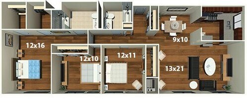 3 Dormitorios, 2 Baños, 1250 pies²Galería del Modelo