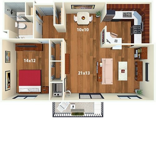 1 Dormitorio, 1 Baño, 800 pies²Disponible AhoraGalería del Modelo
