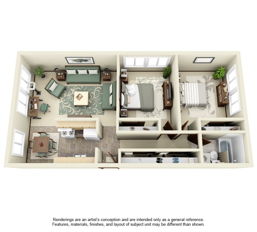 Unidad: 201 - Imagen 4 Los planos son representaciones artísticas. Todas las dimensiones son aproximadas. El producto y las especificaciones reales pueden variar en tamaño o detalle. No todas las características están disponibles en cada vivienda en alquiler. Por favor, consulta con un representante para obtener más detalles.