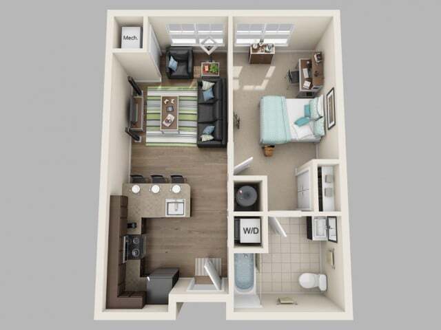 1 Dormitorio, 1 Baño, 615 pies²Disponible August 14, 2026Galería del Modelo
