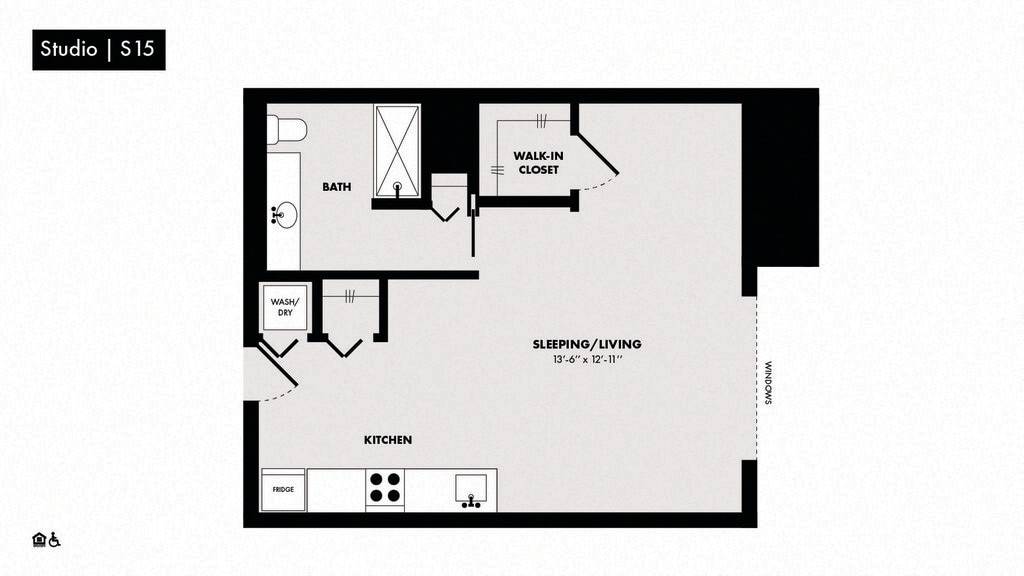 Modelo de apartamento: Studio-S15Estudio, 1 Baño, 590 sq ftDisponible April 21, 2026![]()