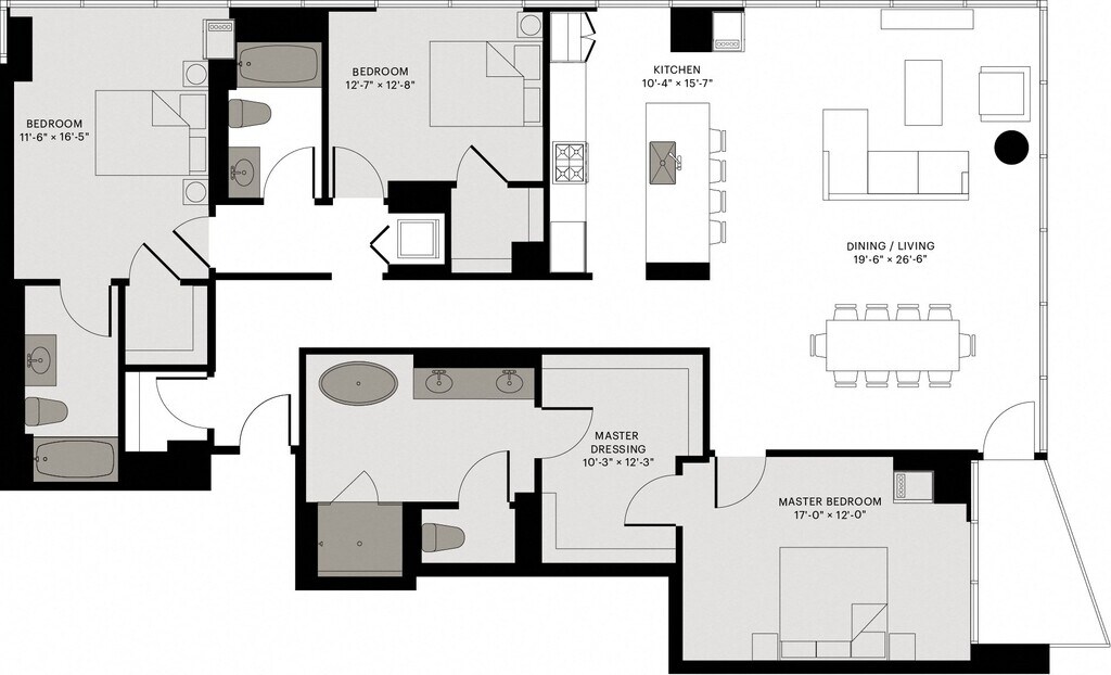 Modelo de apartamento: Plan P03Desde $5,9062 Dormitorios, 2 Baños, 1275 sq ftNo Disponible![]()
