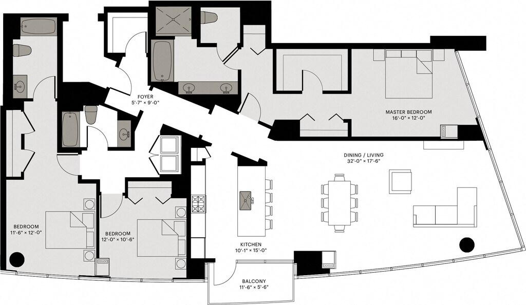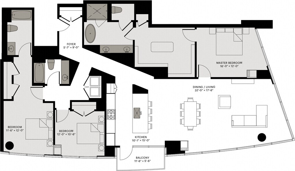 Modelo de apartamento: Plan P01Desde $3,3531 Dormitorio, 1 Baño, 960 sq ftNo Disponible![]()