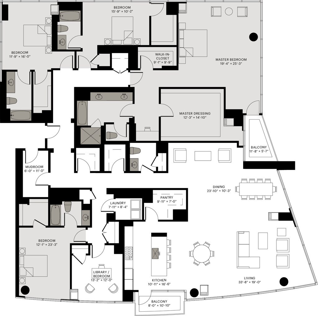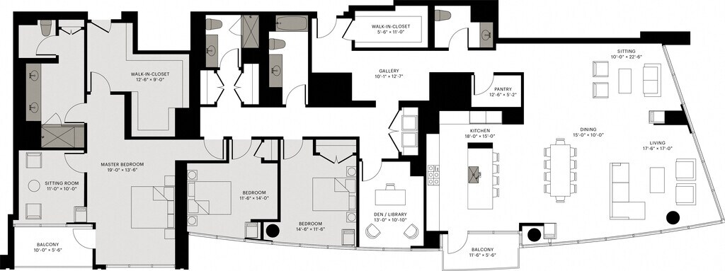 Two West Delaware ofrece apartamentos de 1 a 5 Dormitorios desde $4,280 con 920–4,085 pies cuadrados. Aquí está el precio actual y la disponibilidad: