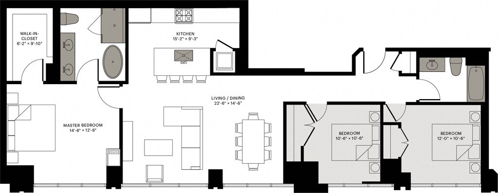 Modelo de apartamento: Plan 06Desde $6,6402 Dormitorios, 2 Baños, 1415 sq ftDisponible January 3, 2026![]()