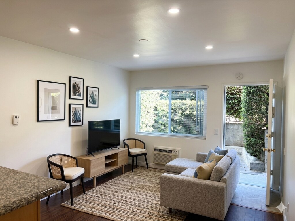 - Iluminación empotrada en toda la sala de estar.