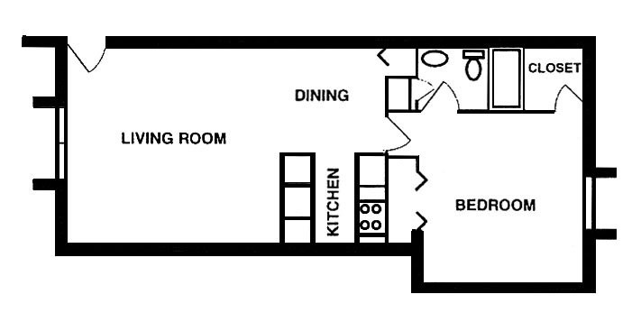 1 BED / 1 BATH Efficiency - Plano 1 ![]()