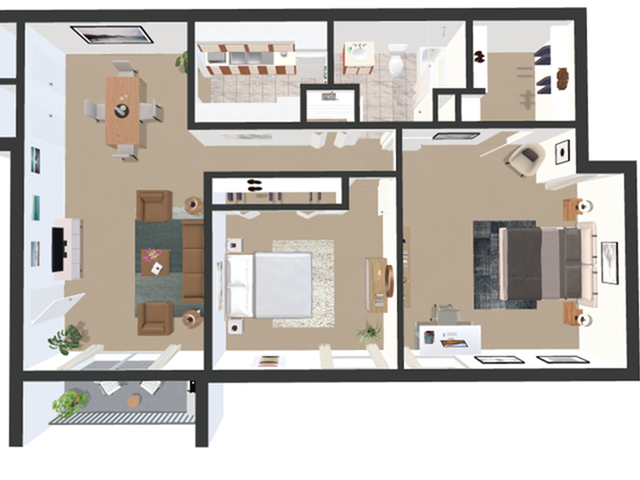 2 Dormitorios, 1 Baño, 883 pies²Galería del Modelo