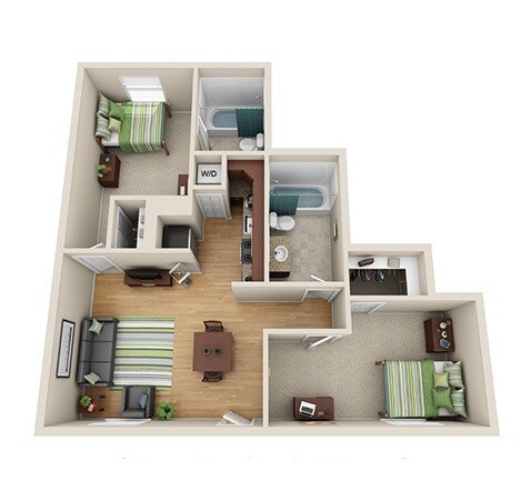 2x2 B - Plano 1 Unidad de apartamento: Standard, Single-PrivateModelo de apartamento: 2x2 B$9352 Dormitorios, 2 Baños, 800 sq ftDisponible AhoraUnidad de apartamento: Standard, Single-PrivateModelo de apartamento: 2x2 B$9352 Dormitorios, 2 Baños, 800 sq ftDisponible August 20, 2026