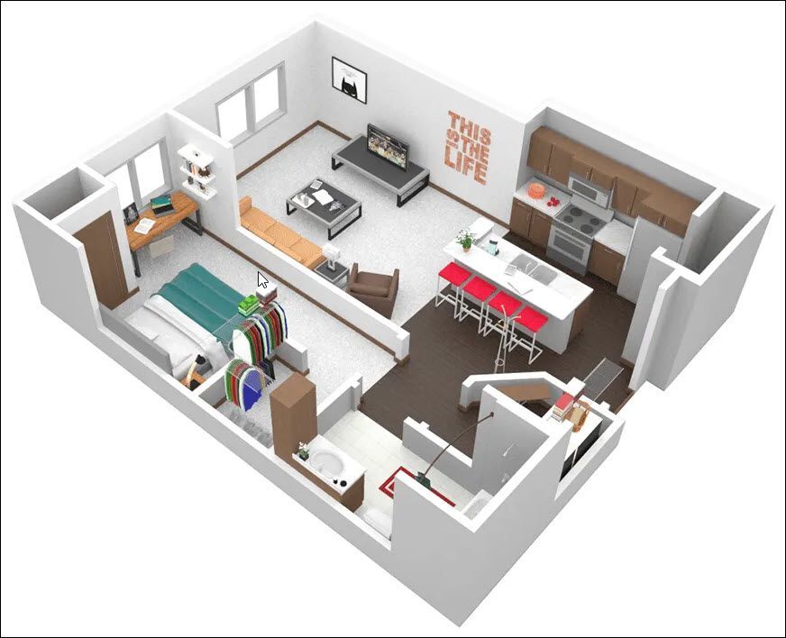 Estudio, 1 Baño, 445 pies²Disponible AhoraGalería del Modelo