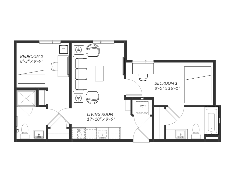 Modelo de apartamento: 2x2A$2,3002 Dormitorios, 2 Baños, 650 sq ftNo Disponible![]()