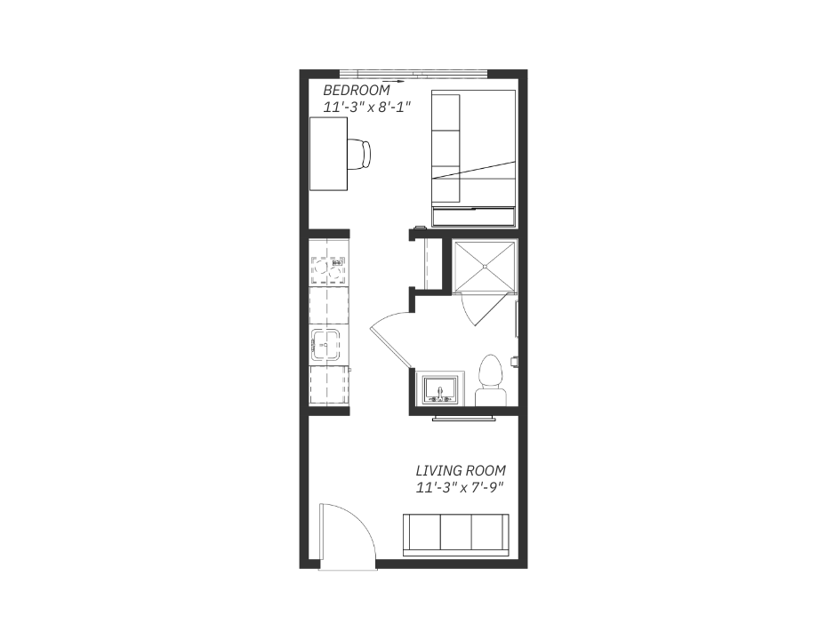 Estudio, 1 Baño, 321 pies²Disponible AhoraGalería del Modelo