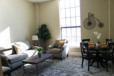 US Rubber Lofts ofrece apartamentos de 1 a 3 Dormitorios desde $1,985 con 550–1,626 pies cuadrados. Aquí está el precio actual y la disponibilidad:
