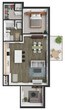 1 Dormitorio, 1 Baño, 750 pies²Disponible April 1, 2026Galería del Modelo