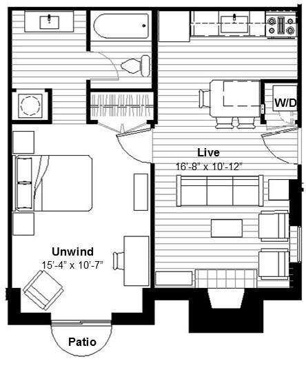 1 Dormitorio, 1 Baño, 479 pies²Disponible AhoraGalería del Modelo