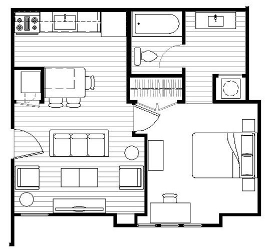 1 Dormitorio, 1 Baño, 566 pies²Disponible AhoraGalería del Modelo
