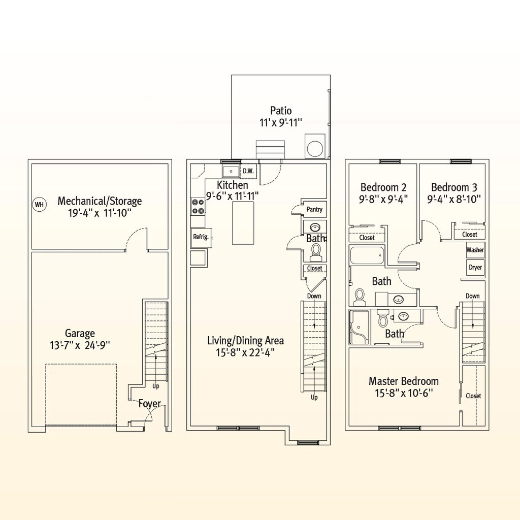 3 Dormitorios, 2.5 Baños, 1500 pies²Disponible Jun 1El más grandeEsta opción tiene las unidades más grandes para este modeloGalería del Modelo