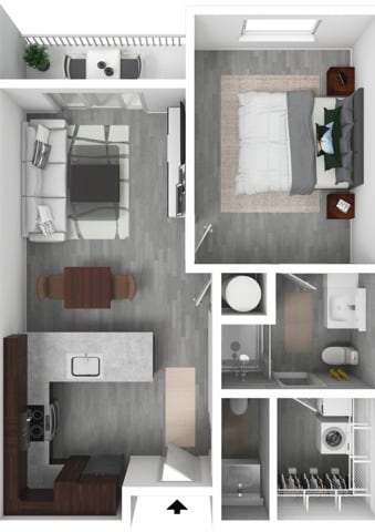 1 Dormitorio, 1.5 Baños, 701 pies²Disponible February 5, 2026Galería del Modelo