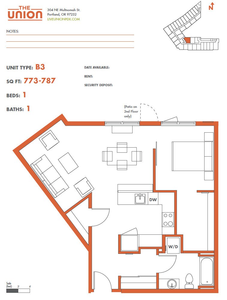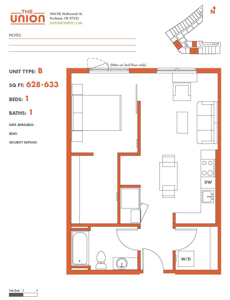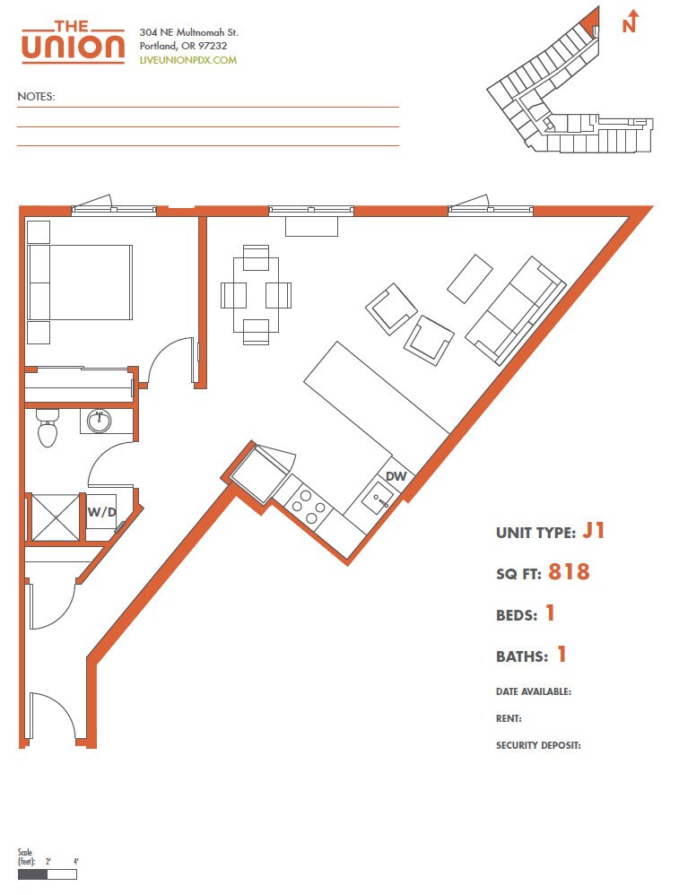 J.1.1 - Plano 2 Unidad de apartamento: 513Modelo de apartamento: J.1.1$1,4501 Dormitorio, 1 Baño, 818 sq ftDisponible AhoraPlano: B