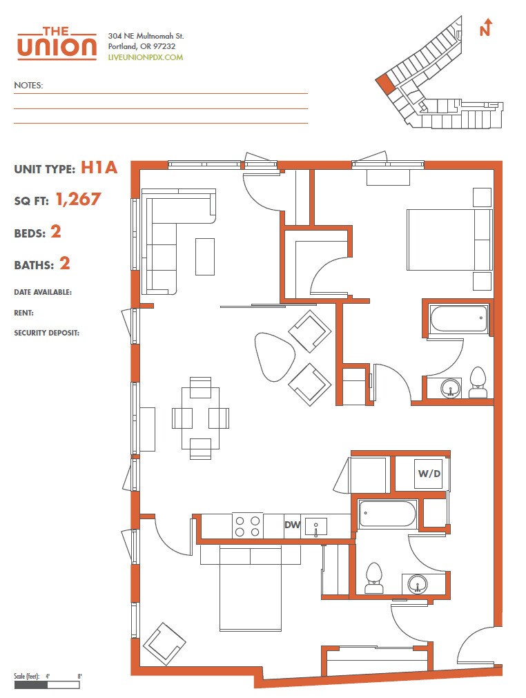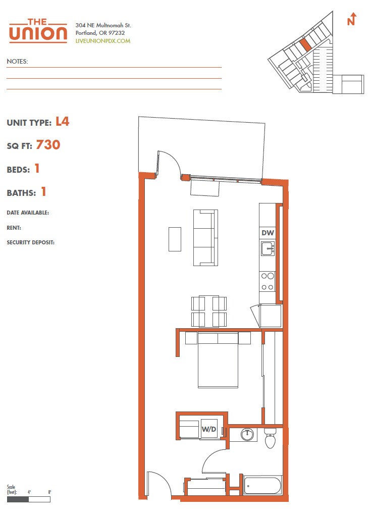 The Union es un complejo de apartamentos de lujo de seis niveles ubicado en Portland, que cuenta con una variedad de planos de planta para elegir: Tipo estudio, abierto de 1 habitación, de 1 a 2 habitaciones con sala de estar y apartamentos en planta baja para vivir/trabajar. El complejo cuenta con todas las comodidades que esperas y más de lo que puedes imaginar, incluso tu propia casa club con cocina para recibir invitados, gimnasio y patio con sala de estar. Echa un vistazo a la estación de lavado interior para tus amigos de cuatro patas, el almacenamiento disponible y la venta al por menor a nivel de la calle en el lugar. Con una ubicación en el centro de Northeast Portland, la conveniente ubicación de The Union ofrece todas las comodidades del hogar justo en el corazón de la ciudad.