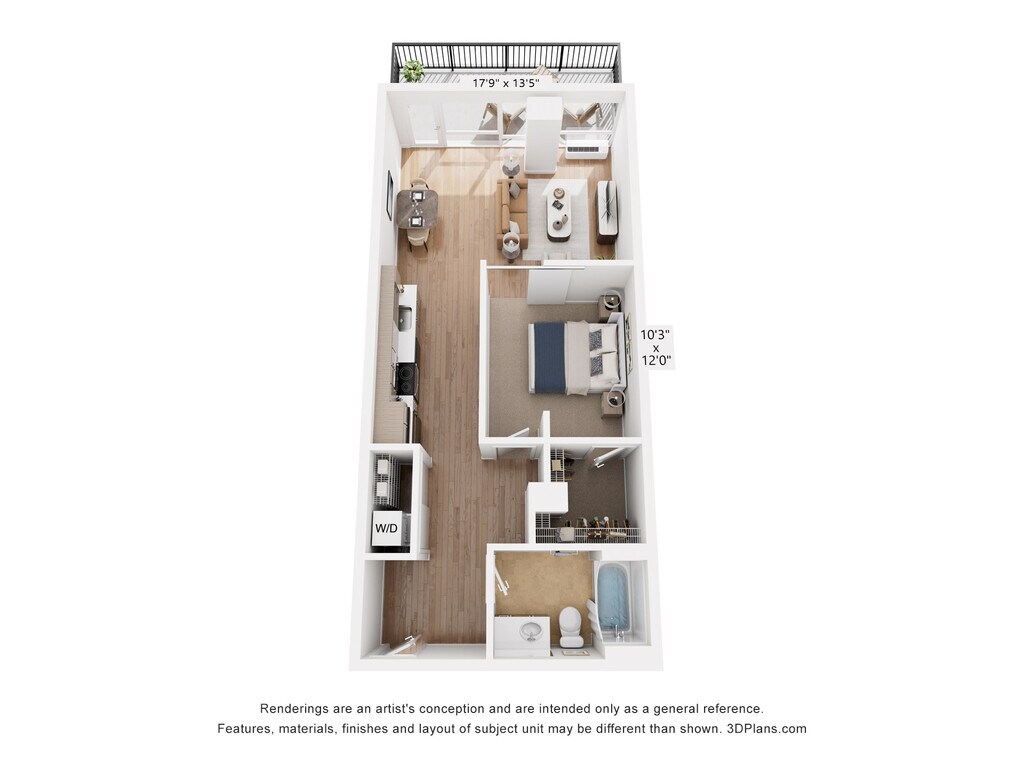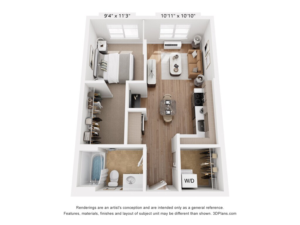 Estudio, 1 Baño, 523-554 pies²Galería del Modelo
