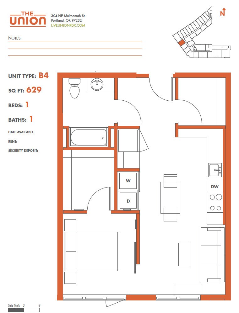 B4 - Plano 2 Unidad de apartamento: 223Modelo de apartamento: B4$1,3501 Dormitorio, 1 Baño, 628 sq ftDisponible AhoraJ.1.1