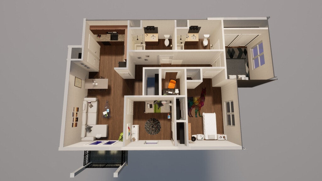 2 Dormitorios, 2 Baños, 891 pies²Disponible AhoraGalería del Modelo