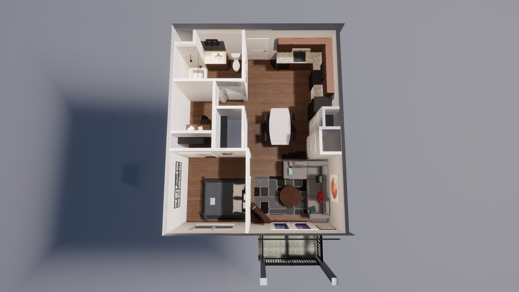1 Dormitorio, 1 Baño, 670 pies²Disponible AhoraGalería del Modelo
