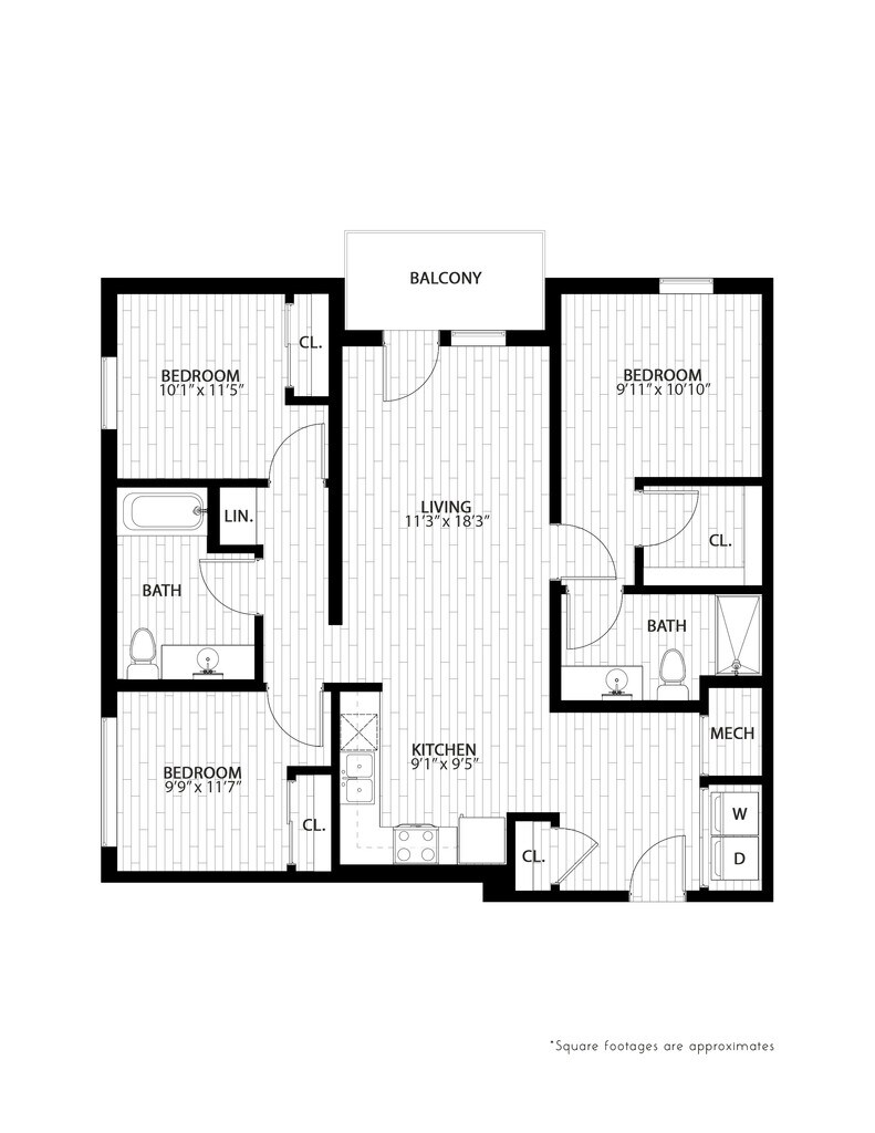 Modelo de apartamento: 111_3b6Desde $1,5223 Dormitorios, 2 Baños, 1135-1228 sq ftDisponible Ahora![]()