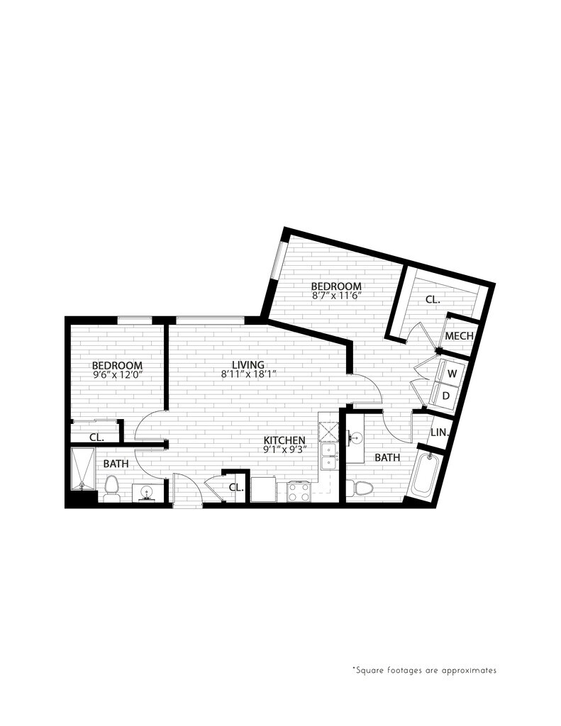 Modelo de apartamento: 111_2b6Desde $1,3202 Dormitorios, 2 Baños, 859-981 sq ftDisponible Ahora![]()