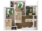 2x2 - Plano 1 Unidad de apartamento: PrivateModelo de apartamento: 2x2$1,0962 Dormitorios, 2 Baños, 859 sq ftDisponible August 21, 20263 Dormitorios