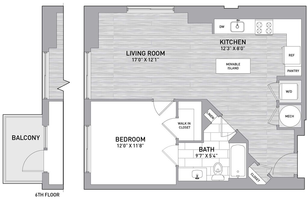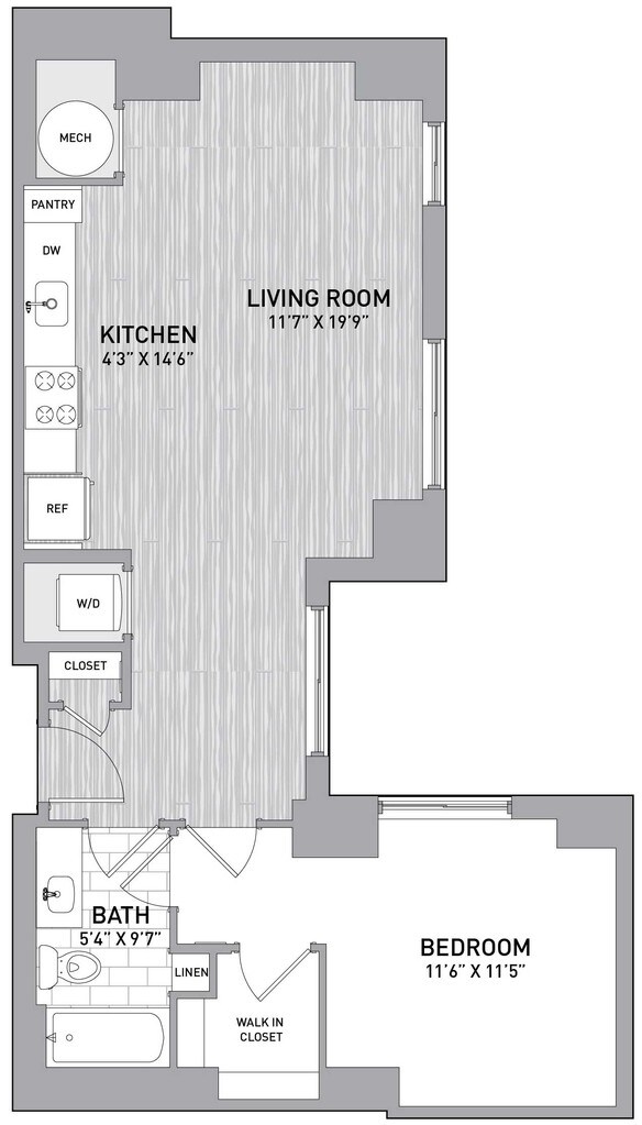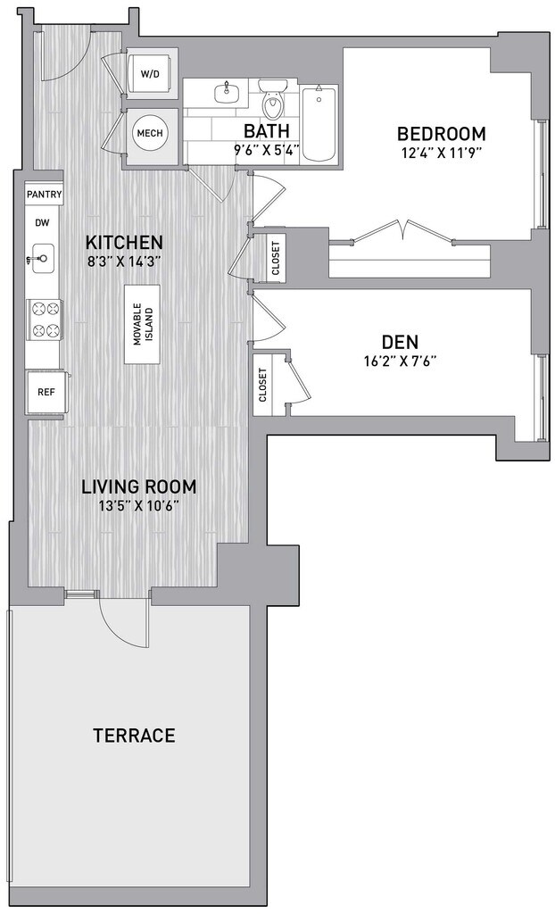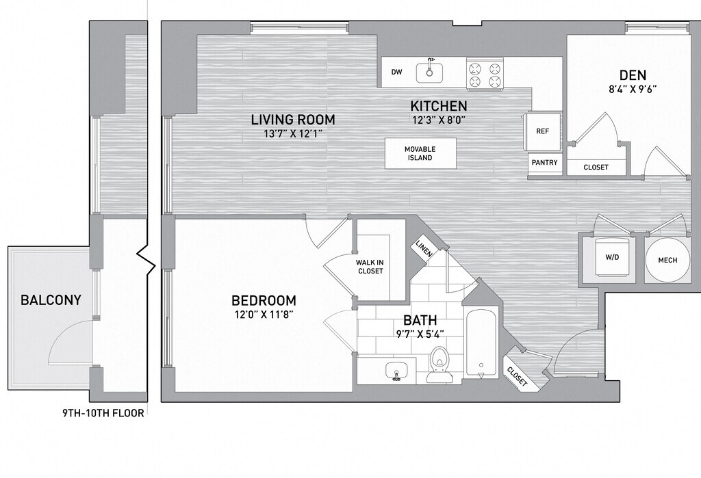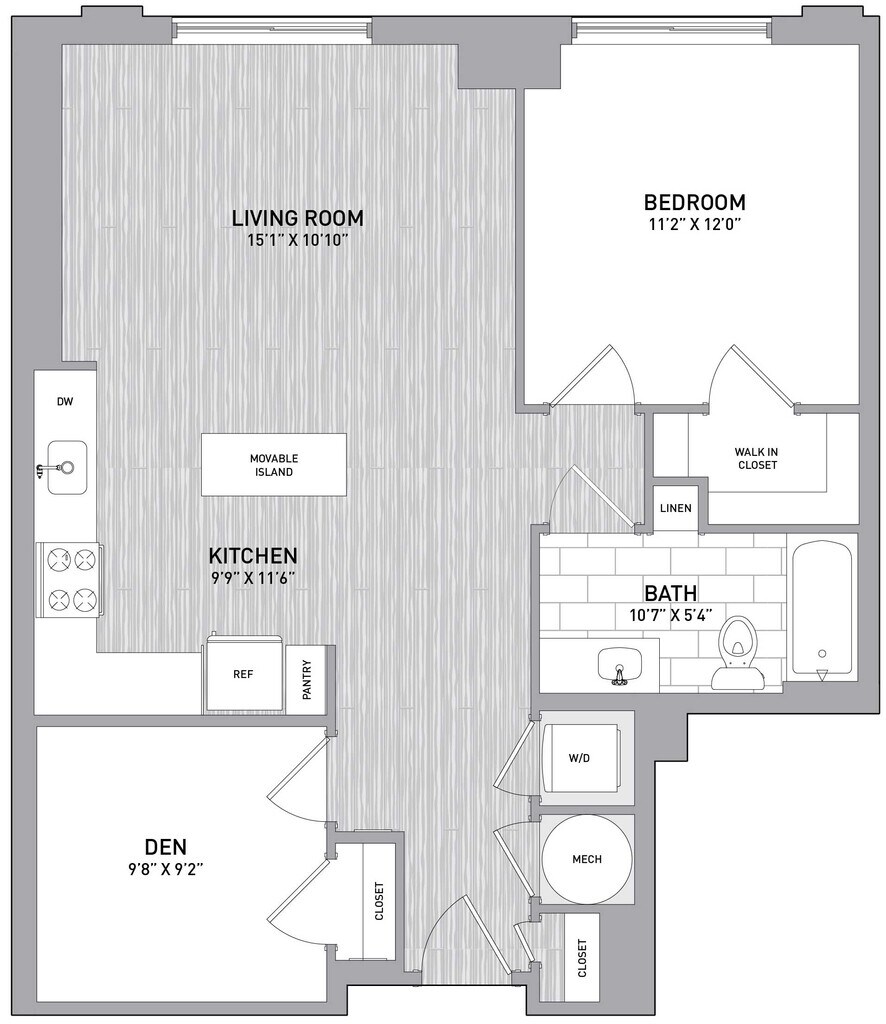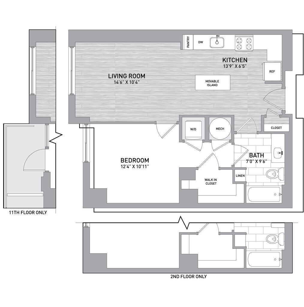 1 Bed1 Bath E - Plano 1 Unidad de apartamento: 151-0112Modelo de apartamento: 1 Bed1 Bath E$2,2061 Dormitorio, 1 Baño, 610 sq ftDisponible Ahora![]()