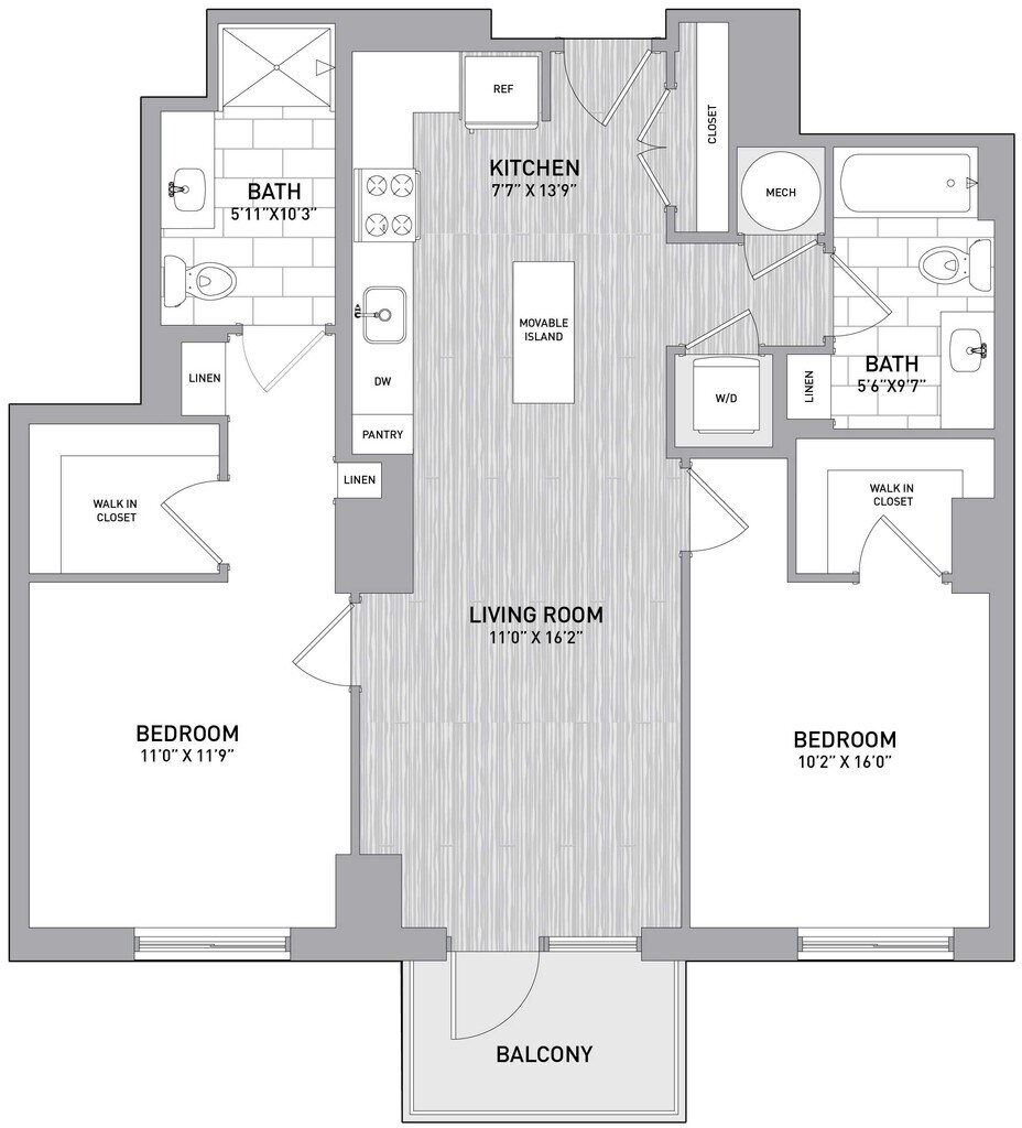 1 Dormitorio, 1 Baño, 686 pies²Disponible AhoraGalería del Modelo