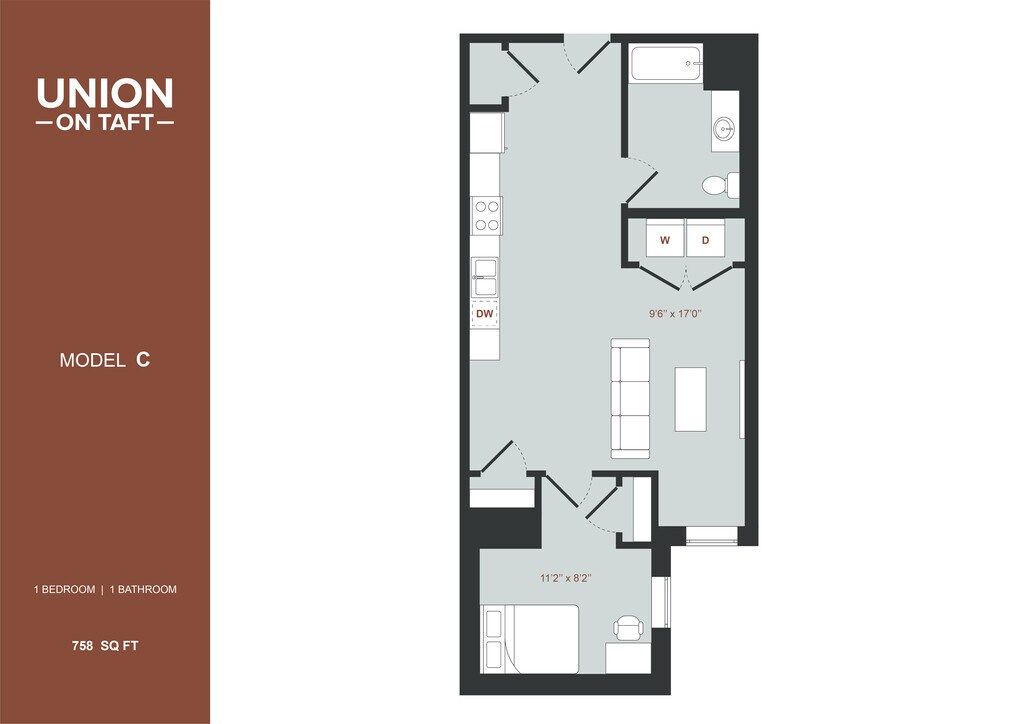 Modelo de apartamento: 1 Bedroom Model C$1,4001 Dormitorio, 1 Baño, 758 sq ftDisponible August 15, 2026PlanosFotos![]()