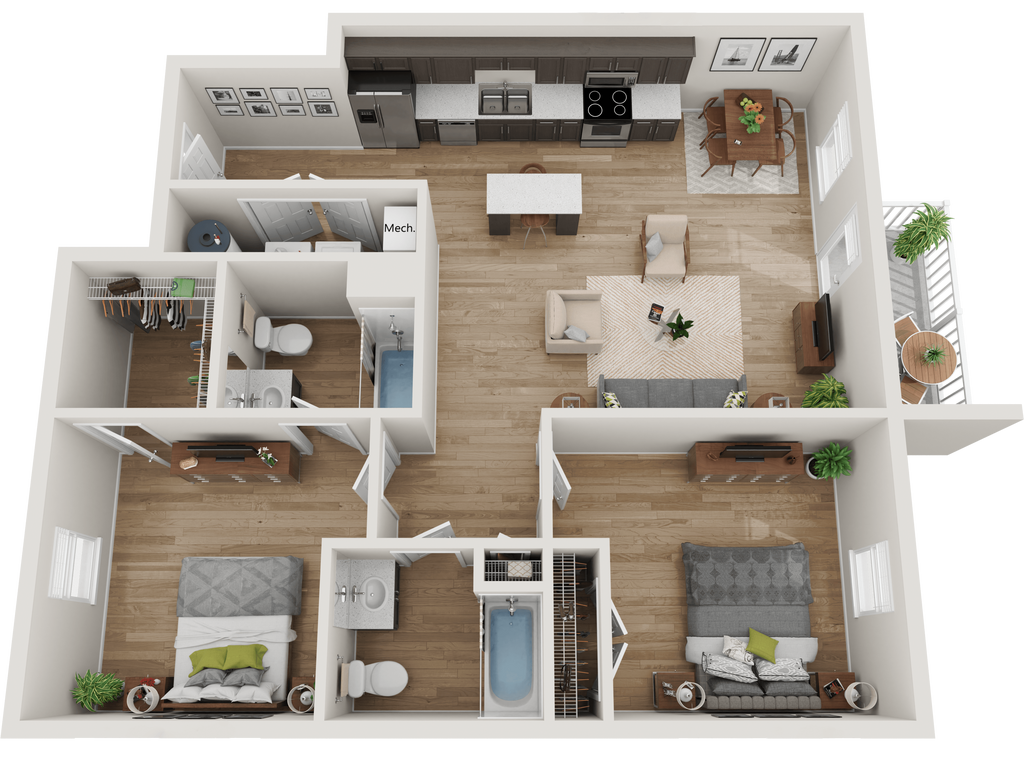 Modelo de apartamento: 2 Bedroom First LevelDesde $1,399Estudio, 1104 sq ftDisponible September 16, 2026![]()